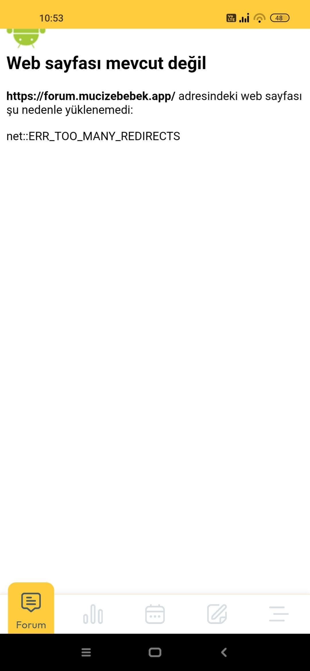 Telefonunun internetinden dener misin? birde normal tarayıcıda dene: forum.mucizebebek.app