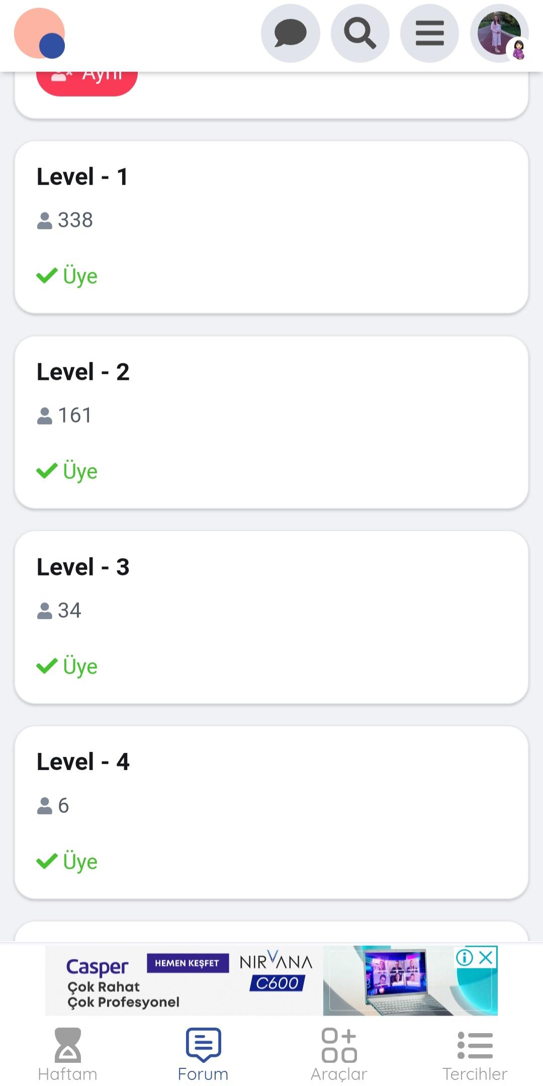 Ben level 4 olduğumu görüyorum ama adım level 1,2,3 ve dörtte var