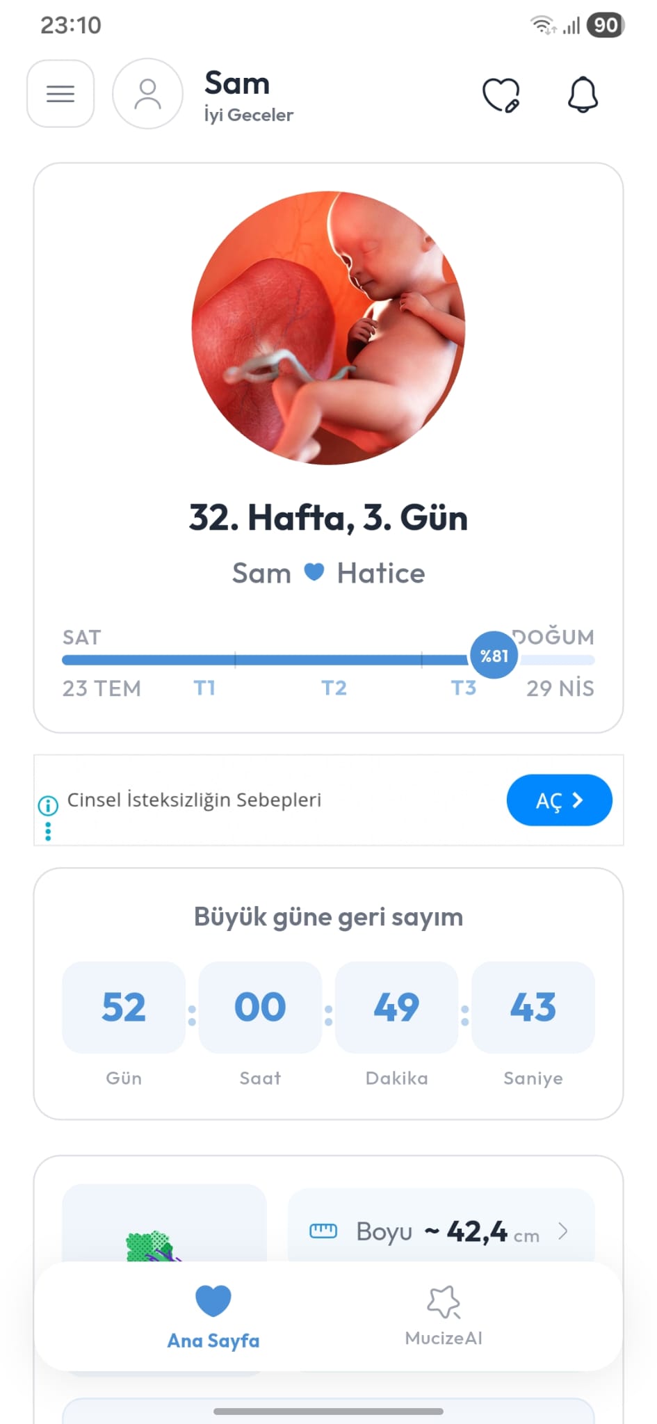 MucizeAI ile Tanışın: Kişisel Sağlık Asistanınız! Artık yalnız değilsiniz. Uygulamaya girdiğiniz kilo, tansiyon, diyabet ve bebek hareketleri (tekme) gibi verileri analiz eden MucizeAI, size tamamen kişiselleştirilmiş öneriler sunuyor. Siz verileri düzenli girin, gerisini MucizeAI’ya bırakın!